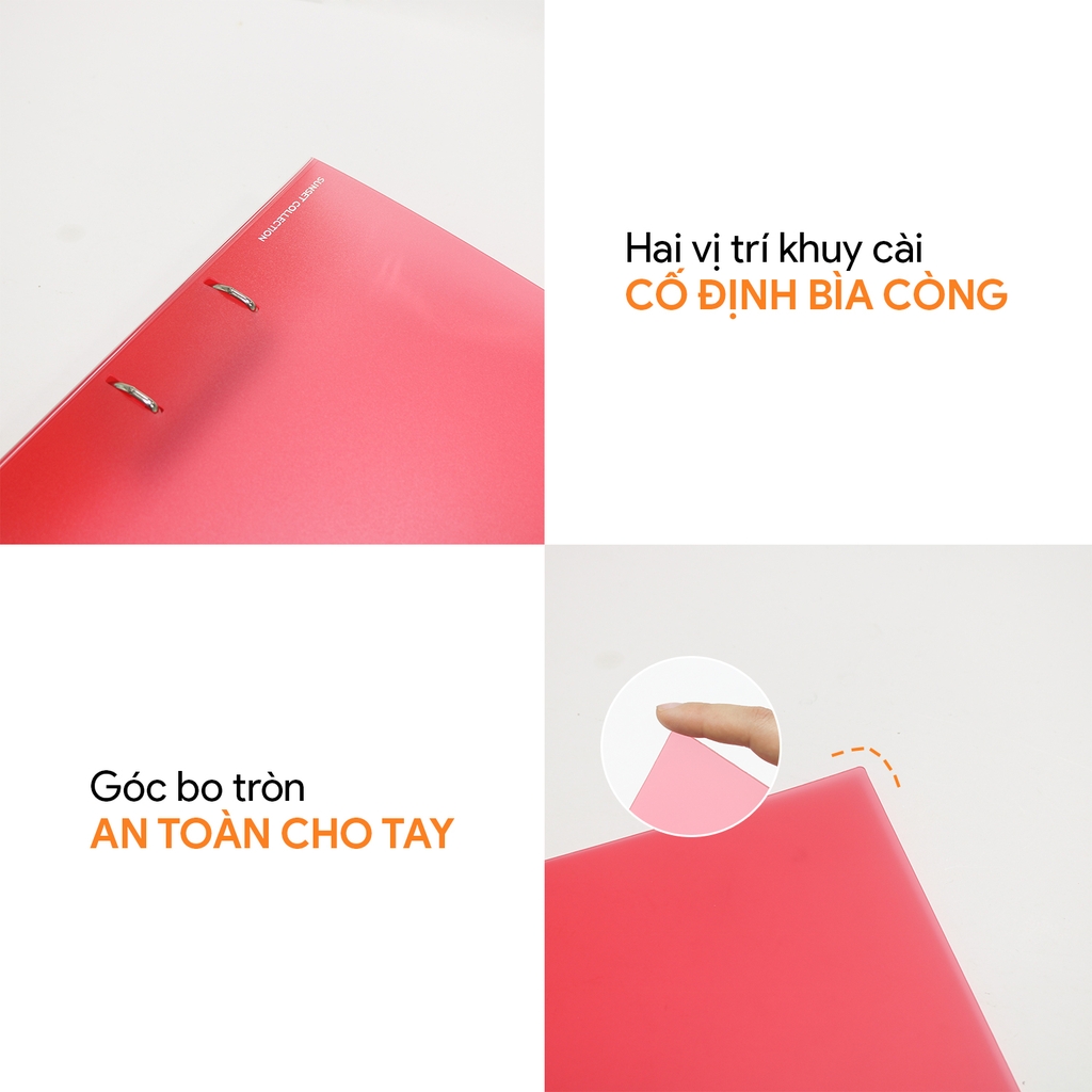 - Bìa nhựa PP dày dặn (1.2mm và 1.5mm), bền hơn, cứng cáp, dễ đứng vững